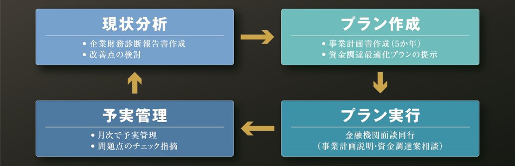"金融機関目線"での計画書作成をおこない、金融機関へ的確な対応をおこないます