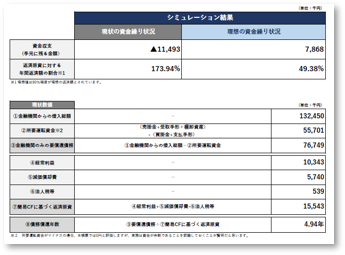 - 借り方・返し方を見直すことで資金繰りが改善されます。 そのため、最適な借り換えシミュレーションをおこないます。